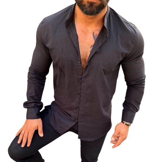Momount Men Linen Shirt – Long Sleeve Slim Fit Band Collar Classic