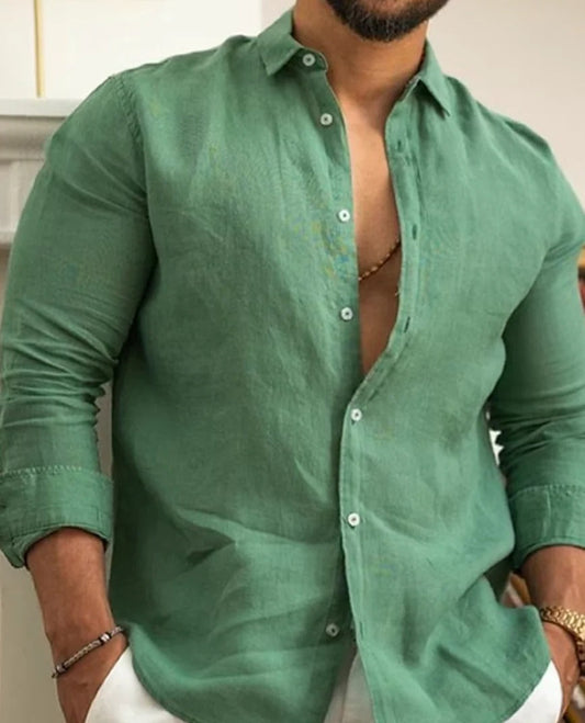 Momount Men Linen Shirt – Long Sleeve Relaxed Fit Summer Casual